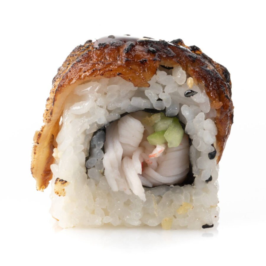 Polpa di granchio e avocado ricoperto con anguilla.